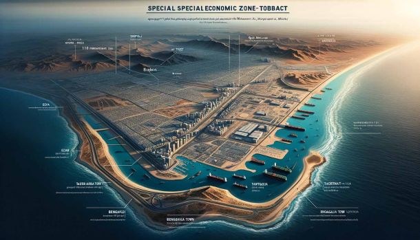 The Special Economic Zone – Tobact (TSEZ) is located in North Africa, in the State of Libya, east of the city of Misrata and the middle of the coastal strip overlooking the Mediterranean Sea, by the international road, with a length of 71 kilometres and a maximum width of about 30 kilometres, and bypass roads with a distance of 123 kilometres, bordered to the east by the Buqrin area from the west by the Qasr Ahmed area and the town of Tawergha.